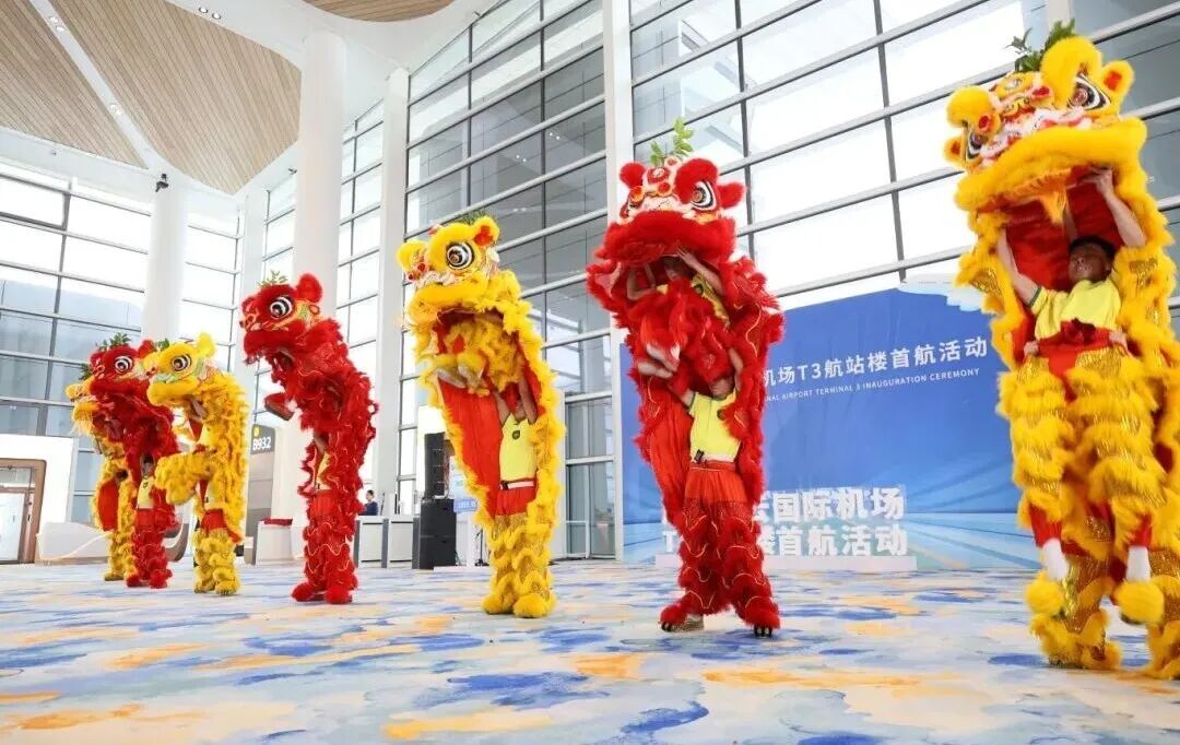 在广州交响乐团“灿烂金属”铜管五重奏激昂雄壮的乐声中,广州白云国际机场T3航站楼正式向世人揭开神秘面纱。在现场洋溢着的喜庆与艺术氛围中,首批旅客在接受机场赠送的纪念品后登机启航。T3航站楼的投入运营,将大幅提升大湾区的航空枢纽能级,在为十五运提供坚实保障的同时,展现着广州作为历史文化名城的独特魅力。